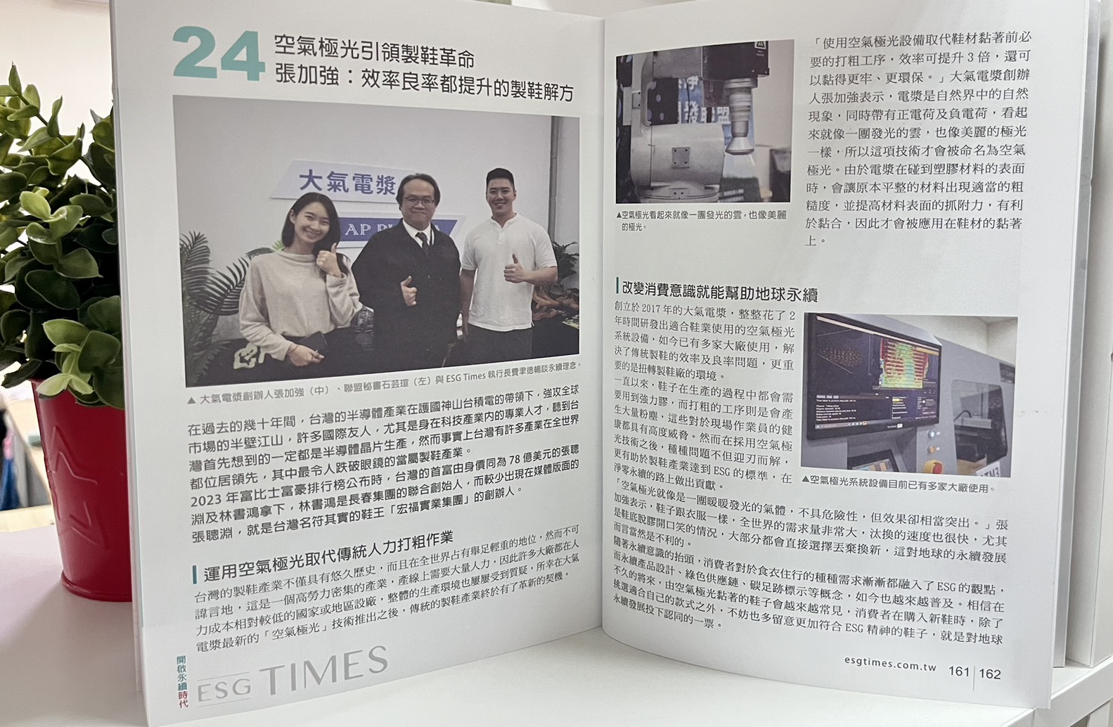 AP Plasma Co., Ltd., founded by Dr.Chia-Chiang Chang from Industrial Technology Research Institute(ITRI), has its innovative core in “Air Aurora Shoe Making Technology”. This globally unique, high-concentration, low-temperature air aurora technology offers greater strength, stability, and uniformity than traditional plasma, making it successfully applicable for shoe manufacturing on a mass scale. To accommodate the surface treatment of shoe soles made of soft and variable materials, AP Plasma Co., Ltd. combines A.I. (Artificial Intelligence) with automated robotic arms to quickly address varying needs at the front end of the production line.